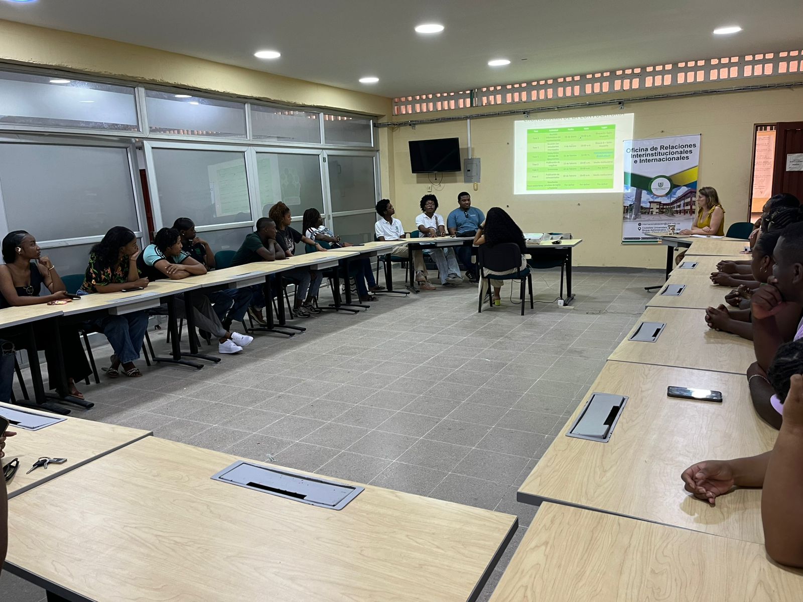 Dentro del cronograma de la convocatoria interna de la Beca David Bushnell, el pasado 28 de enero de 2026, la Oficina de Relaciones Internacionales (ORI) realizó una reunión informativa con representantes y monitores estudiantiles, quienes participaron como voceros ante la comunidad universitaria. El encuentro tuvo lugar a las 10:00 a. m. en el bloque 8, primer piso, salón de maestría, y estuvo dirigido a estudiantes de los niveles V, VI y VII.