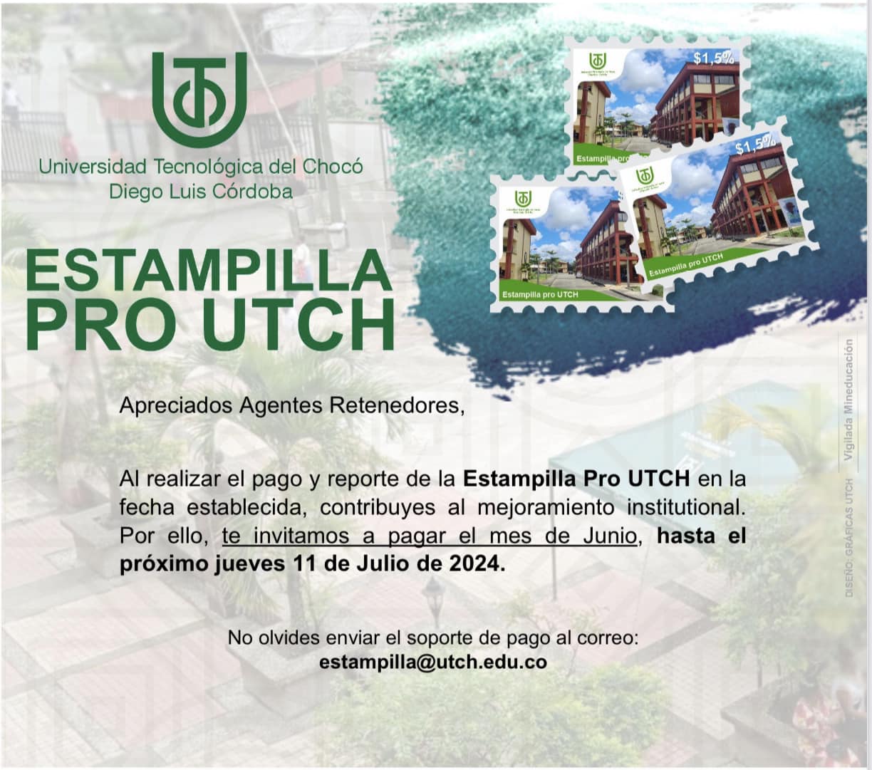 Invitamos a los agentes retenedores a realizar el pago oportuno de la Estampilla Pro UTCH correspondiente al mes de junio de 2024.