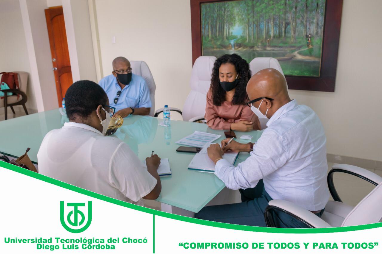 El Rector de la Universidad Tecnológica del Chocó, David Emilio Mosquera Valencia, se reunió con la Coordinadora y Asesora para la Subregión del Chocó del (PDETE), Programa de Desarrollo con Enfoque Territorial Étnico, Bety Eugenia Moreno Moreno y la Coordinadora Regional de ACDI/VOCA para el Chocó, Niza Uribe Lemus, para la articulación de algunos procesos que benefician la comunidad chocoana y garantizan una mejor estabilidad social, económica y cultural, fundamentales a la hora de combatir el flagelo de la violencia.