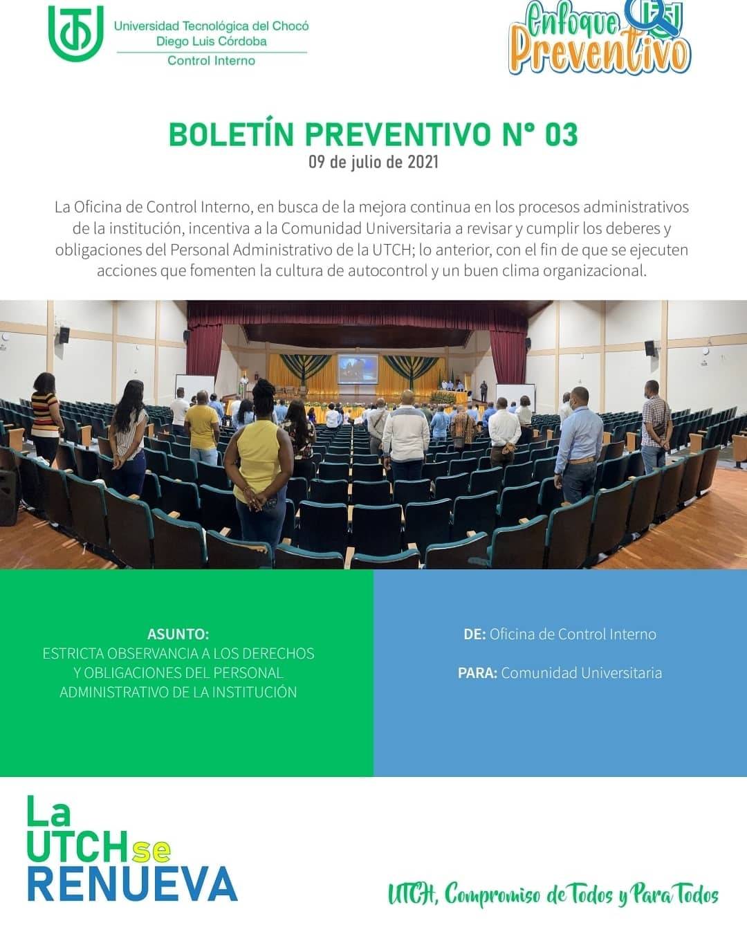 La Oficina de Control Interno, en busca de la mejora continua en los procesos administrativos de la UTCH, incentiva a la comunidad universitaria a revisar y cumplir con los deberes de la institución.