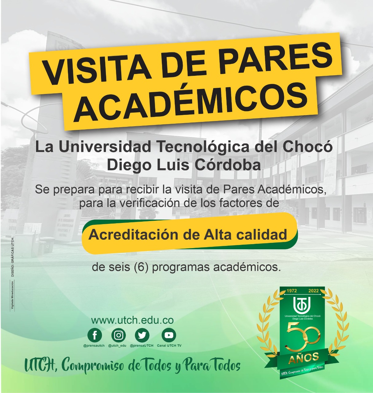 La Universidad Tecnológica del Chocó Diego Luis Córdoba, se prepara para recibir la visita de Pares Académicos, para la verificación de los factores de Acreditación de Alta calidad de seis (6) programas académicos.