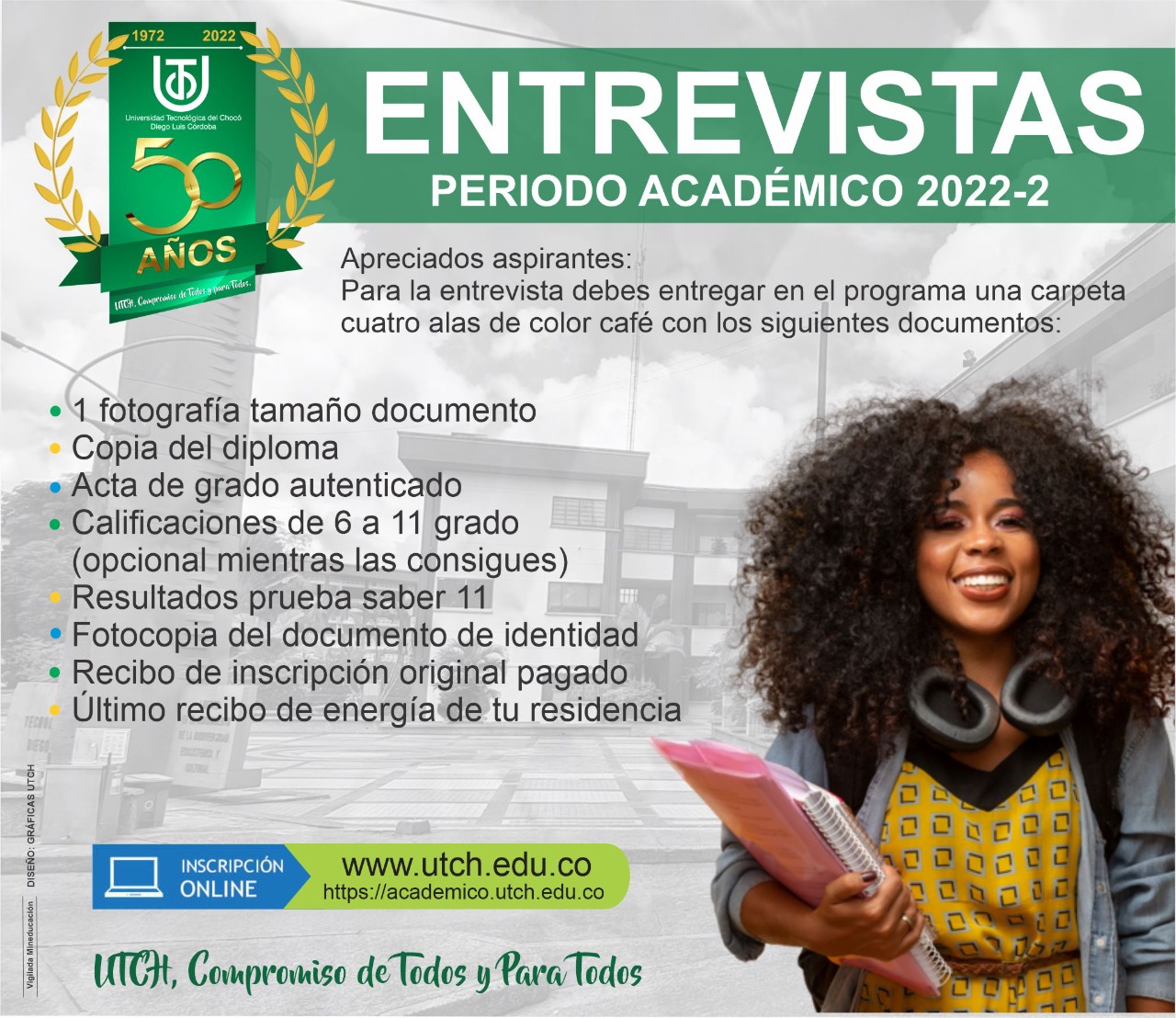 Informamos a los inscritos para el periodo académico 2022-2, que las entrevistas se estarán realizando desde el 11 hasta 16 de julio del año en curso.