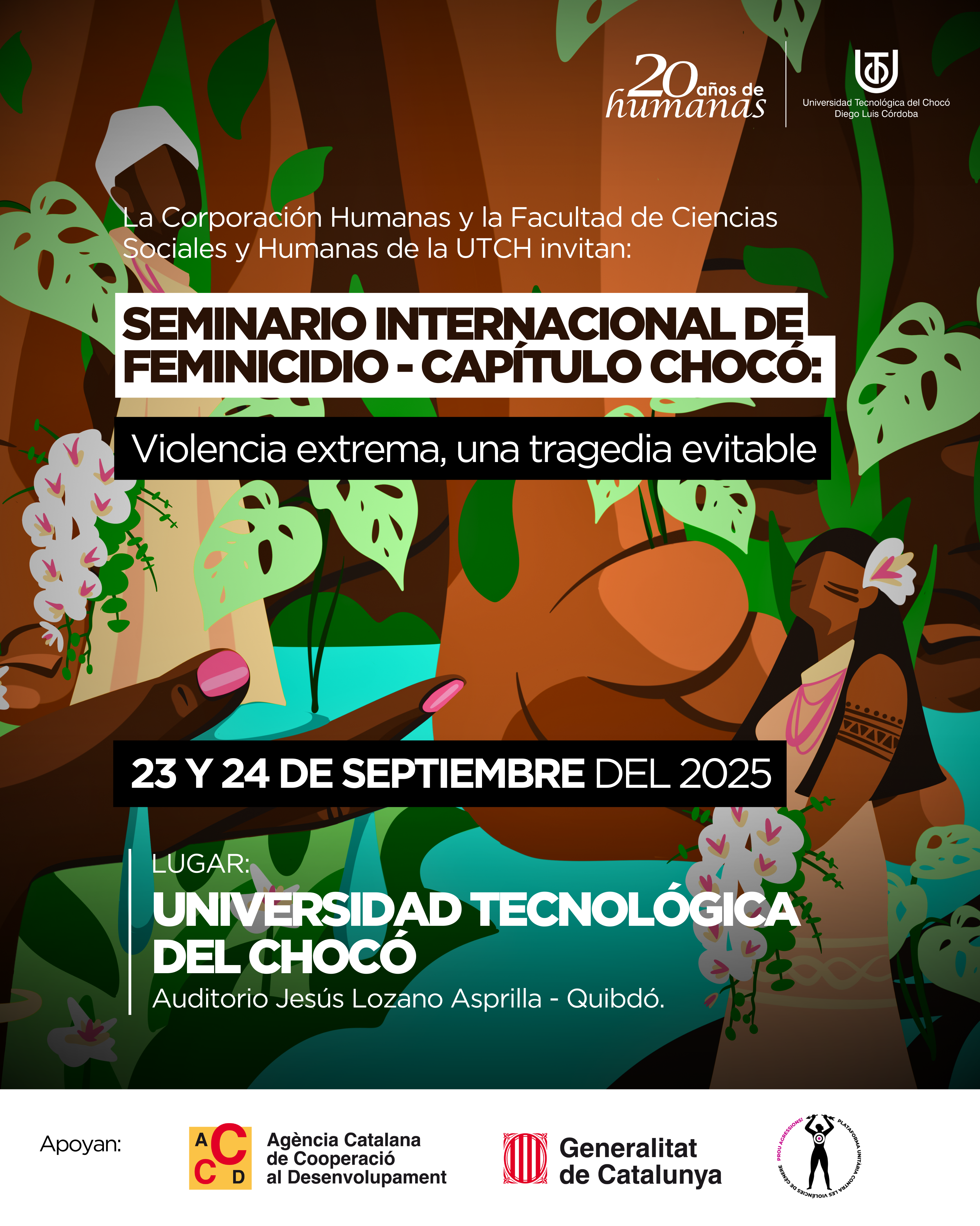 La Universidad Tecnológica del Chocó a través de la Facultad de Ciencias Sociales y Humanas, el Programa de Trabajo Social, la Oficina de Relaciones Internacionales y la Corporación Humanas convocan al Seminario Internacional de Feminicidio – Capítulo Chocó, que se realizará los días 23 y 24 de septiembre de 2025 en Quibdó.