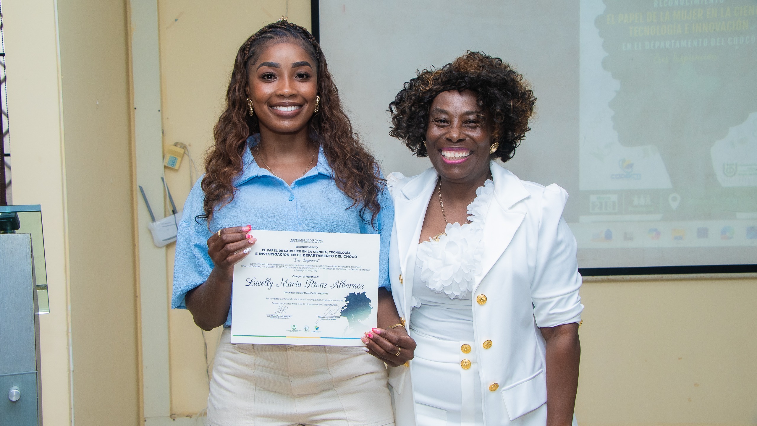 La Vicerrectoría de Investigación, en articulación con la Coordinación de Internacionalización y el proyecto Codecti Chocó, rindió homenaje a 78 mujeres entre ellas parteras tradicionales, cuyo trabajo en salud materna representa un pilar fundamental para la región, investigadoras activas en la UTCH, el Instituto de Investigaciones Ambientales del Pacífico (IIAP), el SENA, la UNAD y la Uniclaretiana, resaltando su impacto en el campo de la Ciencia, Tecnología e Innovación (CTeI).