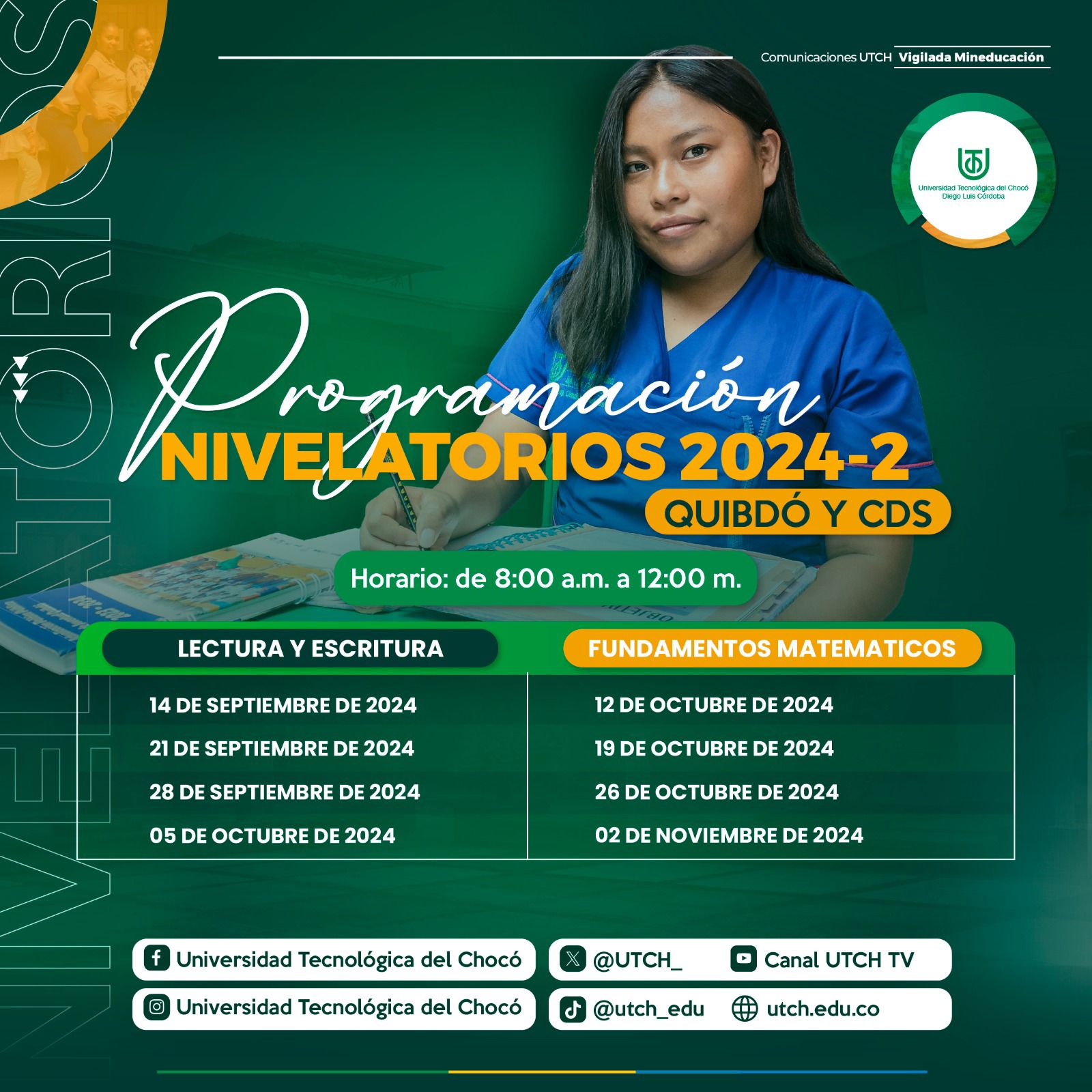 #Nivelatorios | 📚 La Vicerrectoría de Docencia informa a los ESTUDIANTES DEL PRIMER NIVEL en el periodo académico 2024-2, que el inicio de los CURSOS NIVELATORIOS se desarrollarán de forma presencial en Quibdó y en los Centros de Desarrollo Subregional (CDS), en el horario de 8 :00 am a 12:00 m., en las siguientes fechas ⬇️🫧