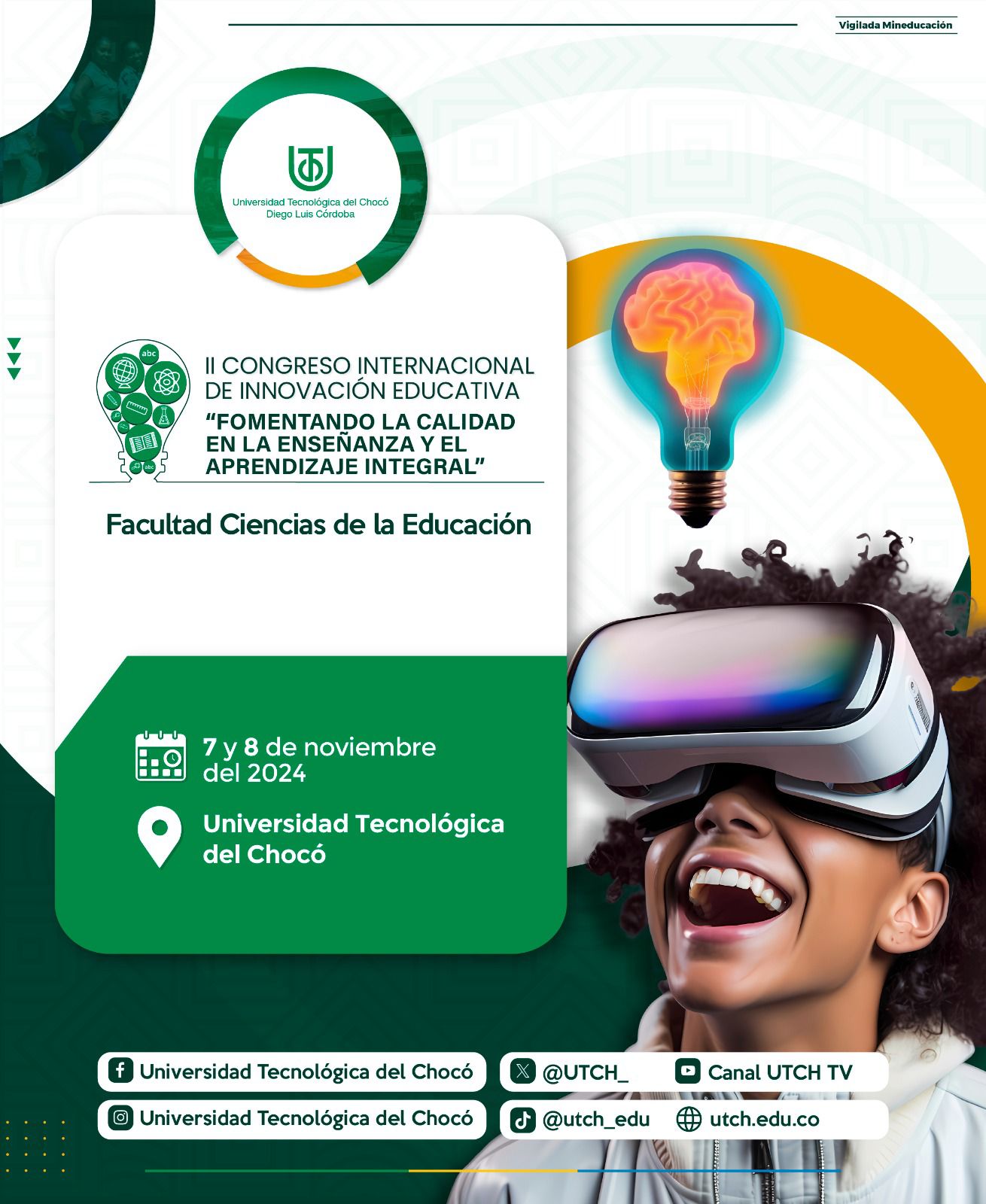 La Facultad de Ciencias de la Educación dada su naturaleza, experiencia y trayectoria en la formación de maestros y maestras en la región, busca con la realización de este evento académico-investigativo articular los programas de posgrados, pregrado, básica primaria, secundaria y media localizados en el Departamento del Chocó motivando la reflexión, realidades y tendencias sobre el quehacer educativo para generar estrategias innovadoras.✨