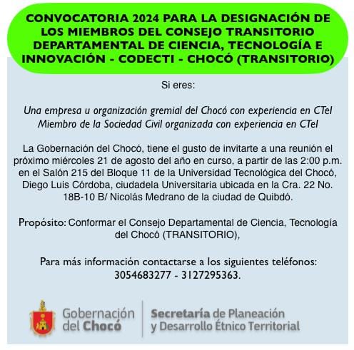 Reactivación del Comité Departamental de Ciencia, Tecnología e Innovación del Chocó