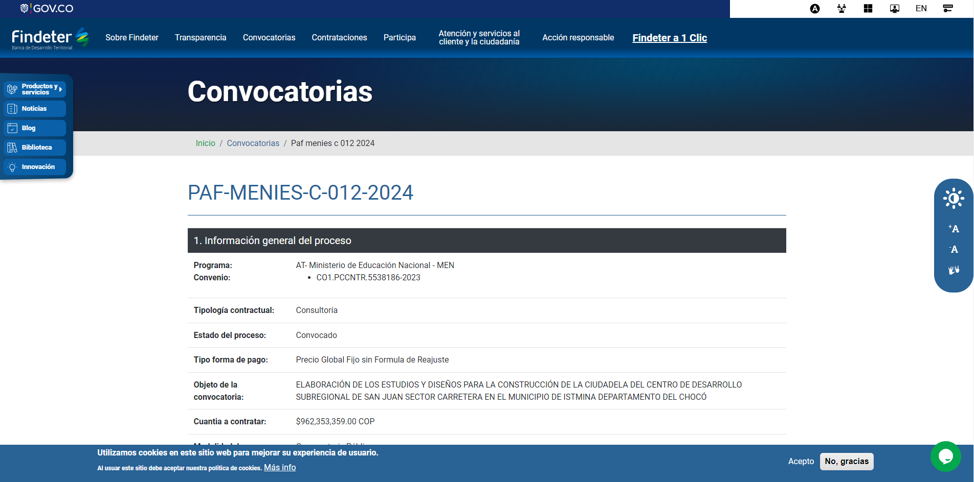 Para participar en esta convocatoria, acceda al siguiente enlace:https://www.findeter.gov.co/convocatorias/paf-menies-c-012-2024