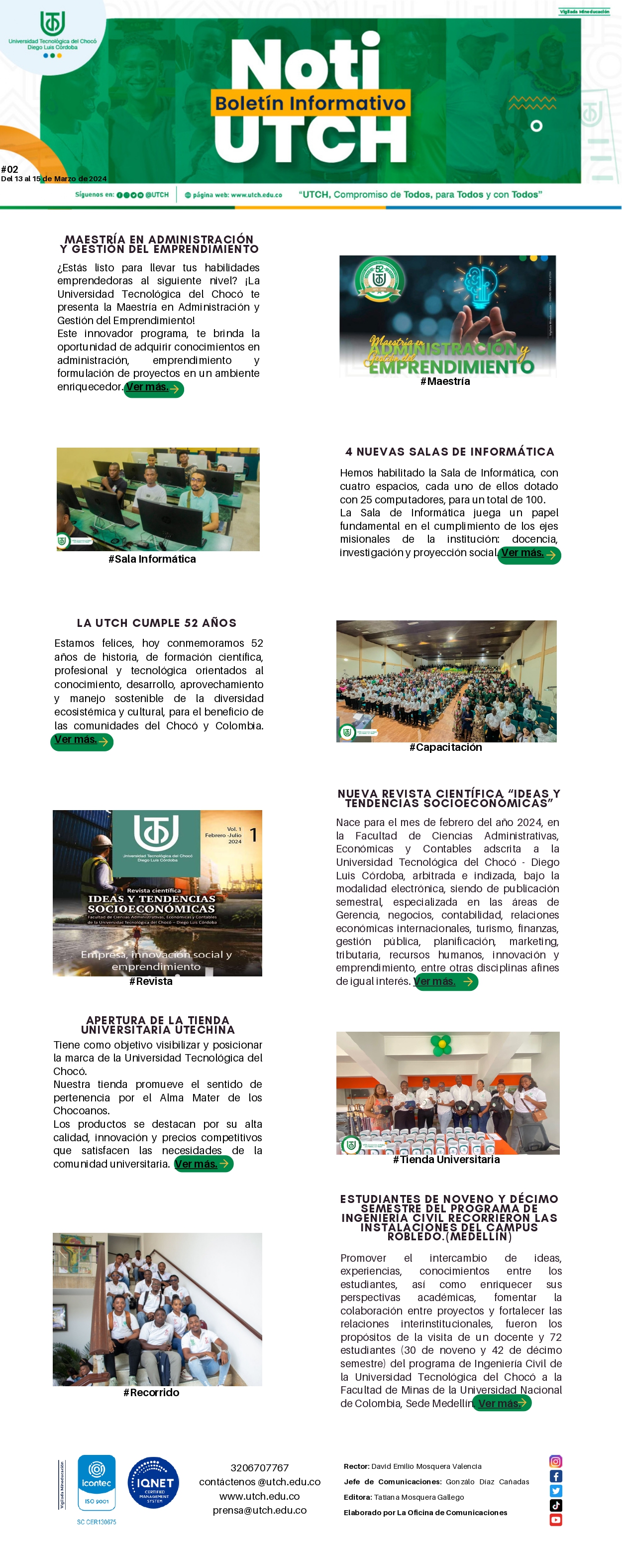 Este boletín informativo resume y presenta las noticias relevantes sobre todo lo sucedido en nuestra alma mater. Proporcionando así a los lectores información actualizada y concisa sobre eventos, tendencias o acontecimientos relevantes en el área de interés. ¡Es una excelente forma de mantenerse informado de manera rápida y sencilla!
