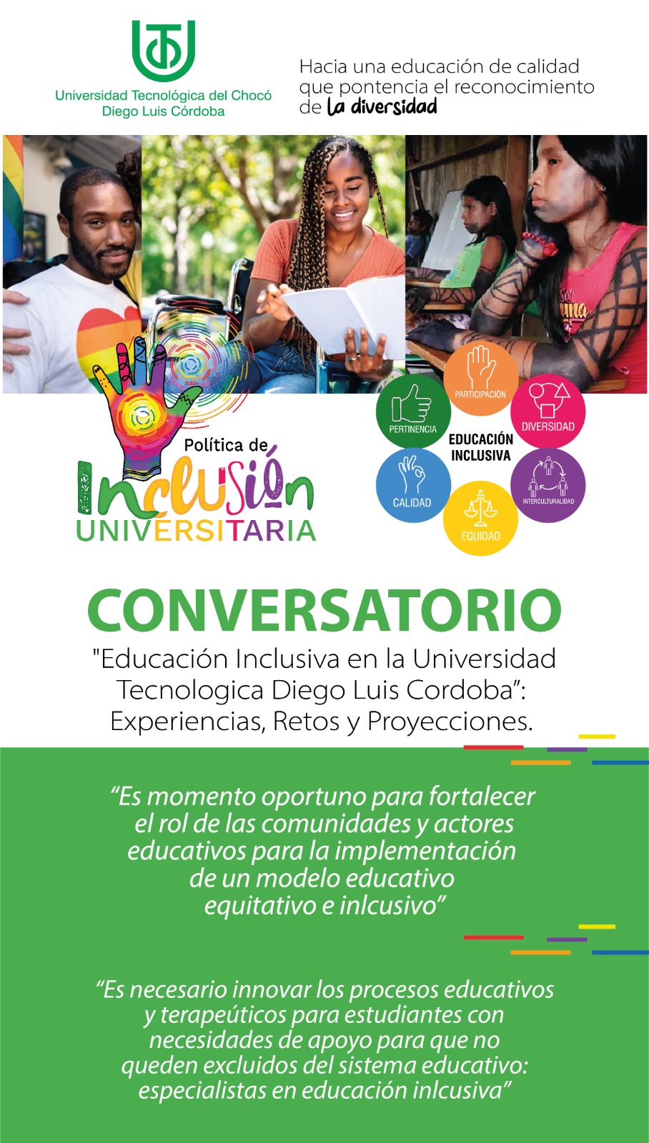 La Universidad Tecnológica del Chocó Diego Luis Córdoba se viste de diversidad e inclusión. Motivados en poder generar, crear y fortalecer las capacidades y habilidades de sus estudiantes.