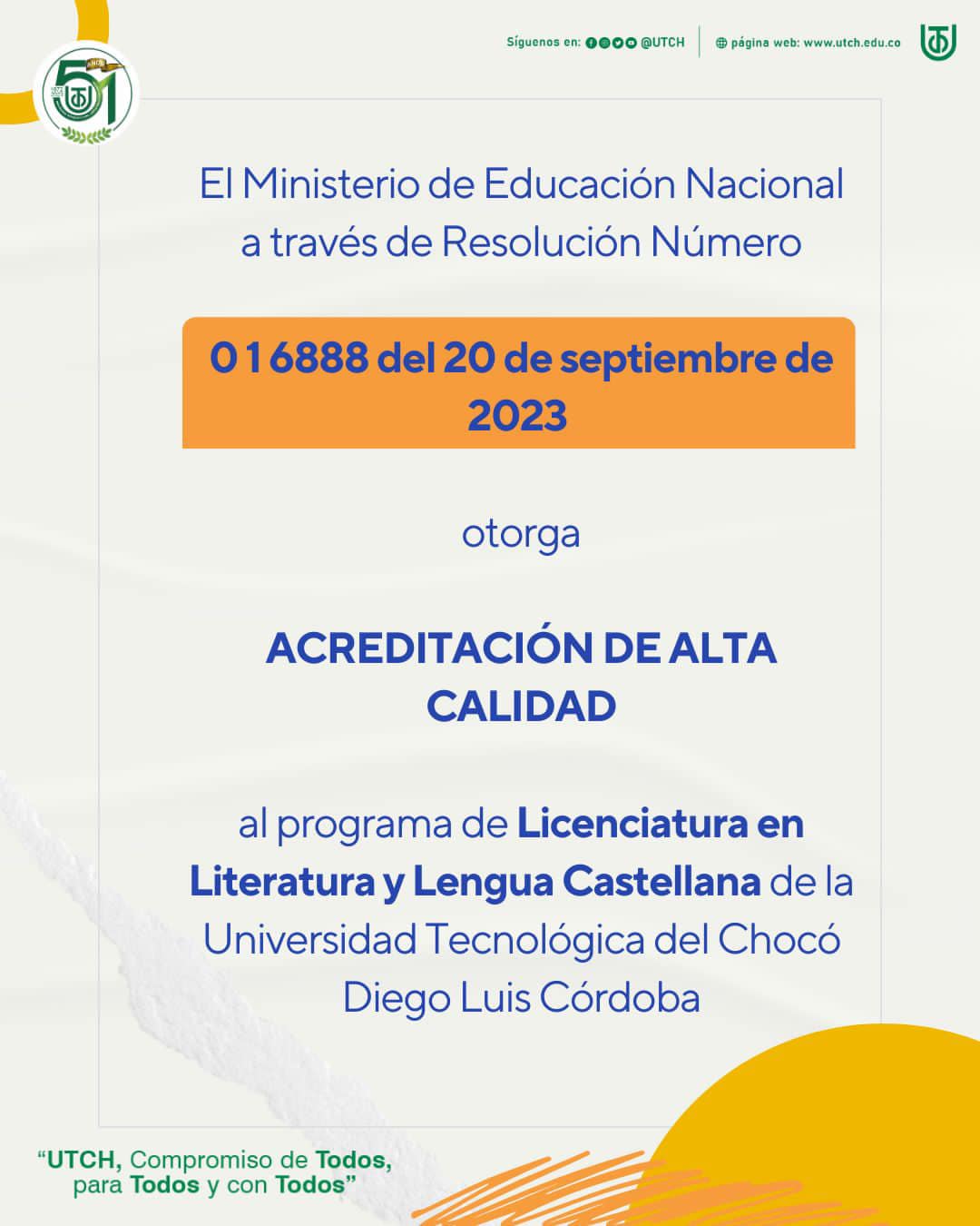 Llenos de emoción y orgullo le contamos a la comunidad universitaria, al Chocó, al Pacífico y al mundo entero que la Universidad Tecnológica del Chocó cuenta con su tercer programa Acreditado de Alta Calidad, después de Educación Física, Recreación y Deporte, segundo Biología.