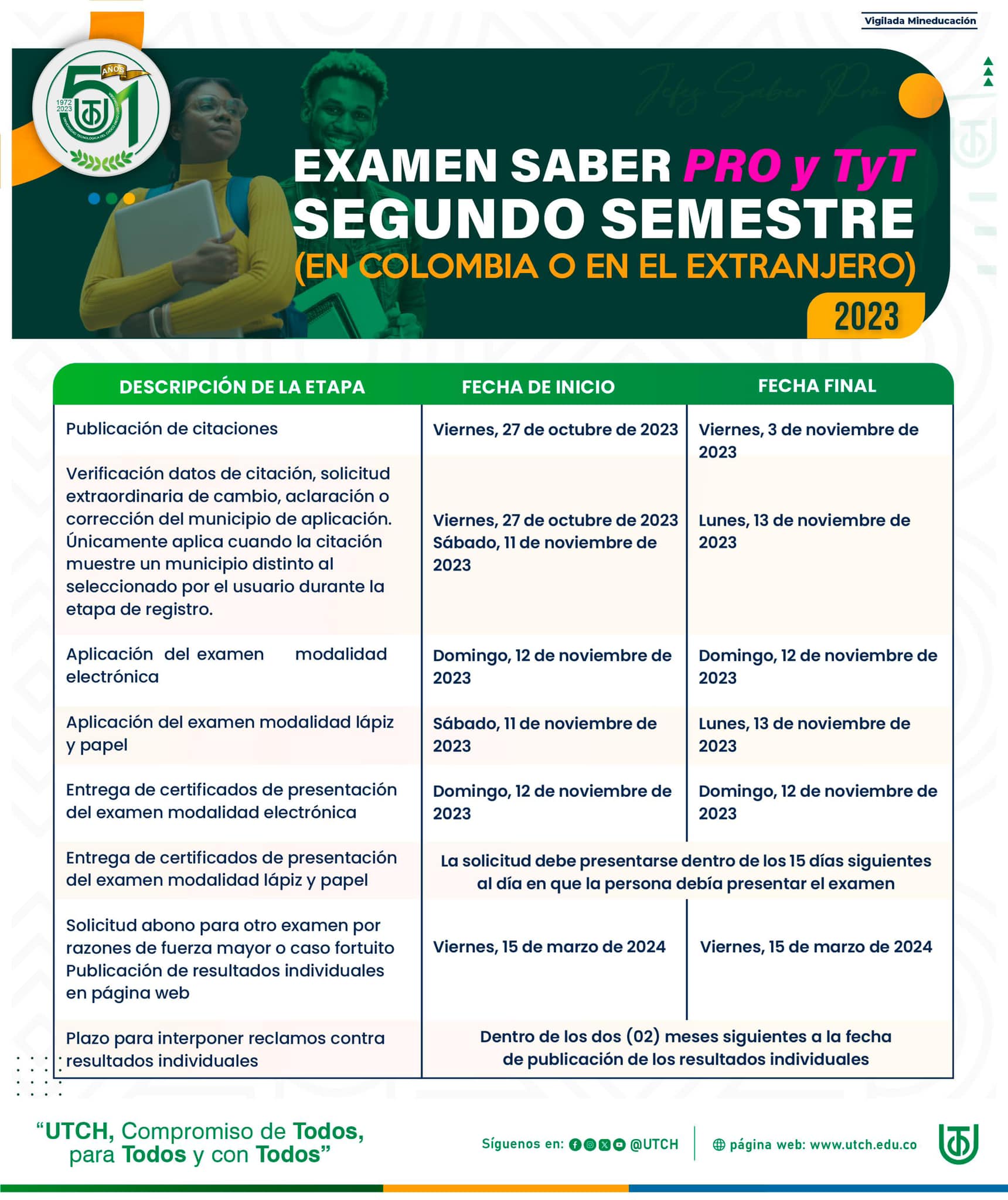Todos los estudiantes que vayan a presentar las pruebas Saber Pro y TyT aquí les mostramos el cronograma a tener en cuenta ![]()